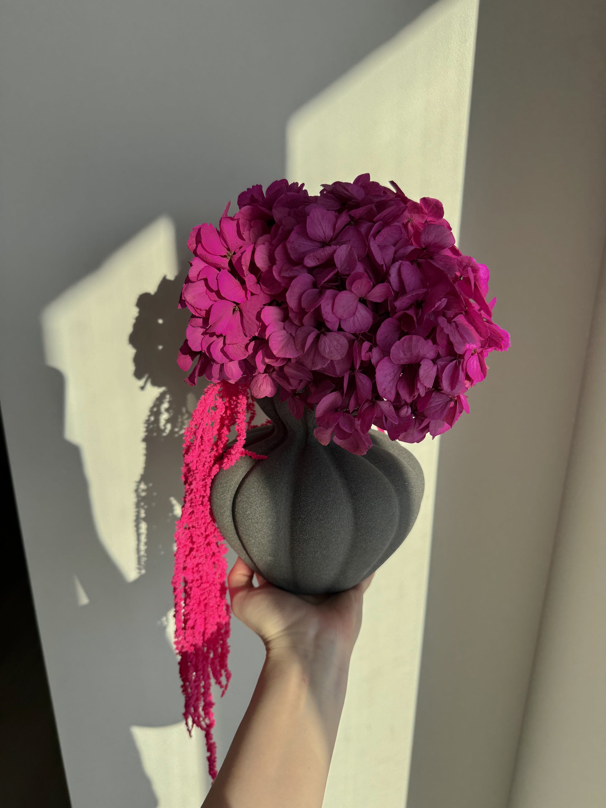 Kaina nurodyta vieno hortenzijos žiedo su burnočiu, kaip nuotraukose. Vaza į kainą neįeina.